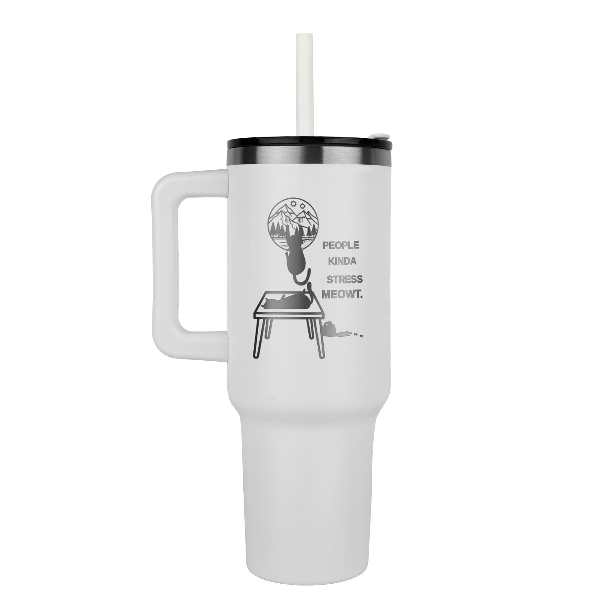La gente se estresa un poco./ Vaso de acero inoxidable grabado