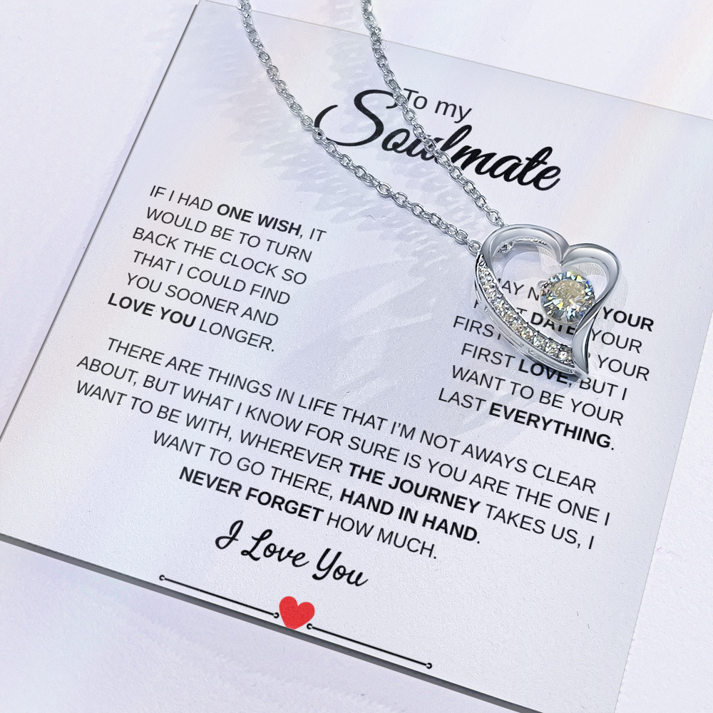 The dazzling Forever Love Necklace is sure to make her heart melt! This necklace features a stunning 6.5mm CZ crystal surrounded by a polished heart pendant embellished with smaller crystals to add extra sparkle and shine. Beautifully crafted with either a white gold or yellow gold finish, be sure to give her a classic gift she can enjoy everyday.