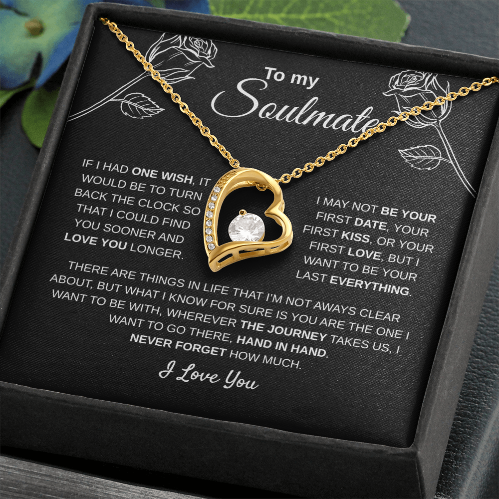 The dazzling Forever Love Necklace is sure to make her heart melt! This necklace features a stunning 6.5mm CZ crystal surrounded by a polished heart pendant embellished with smaller crystals to add extra sparkle and shine. Beautifully crafted with either a white gold or yellow gold finish, be sure to give her a classic gift she can enjoy every day.